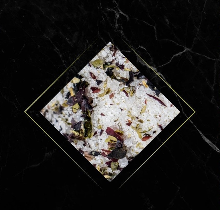 Flor de Sal con Algas: Un maridaje 100% marino ideal para tus pescados, sopas y caldos de inspiración asiática. Agrega un toque de yodo a sus vegetales y pasteles.